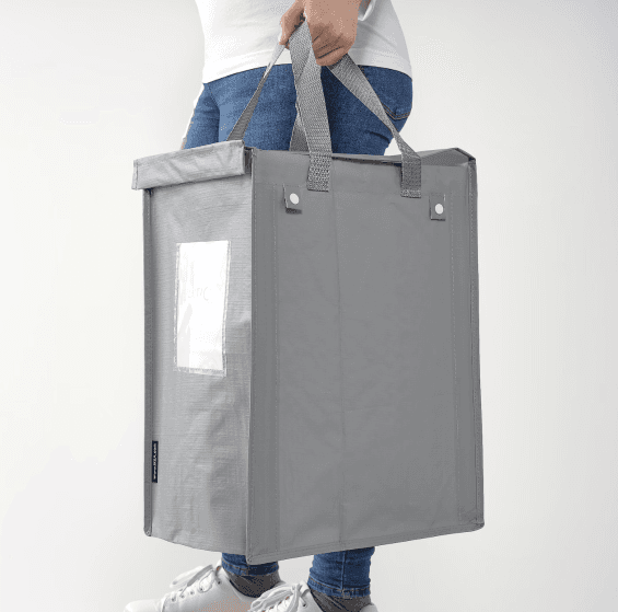 이케아 딤파 분리수거가방은 쓰레기통이자 가방이다. 각이 잘 잡혀 쓰레기 통처럼 쓰다가 버릴 때가 되면 바로 들고 나가서 버리면 된다. 분리수거를 위해 별도의 쓰레기 봉투를 쓸 필요가 없다. 파란색 이케아 가방과 재질이 비슷하며 씻어서 반복해서 사용할 수 있다.