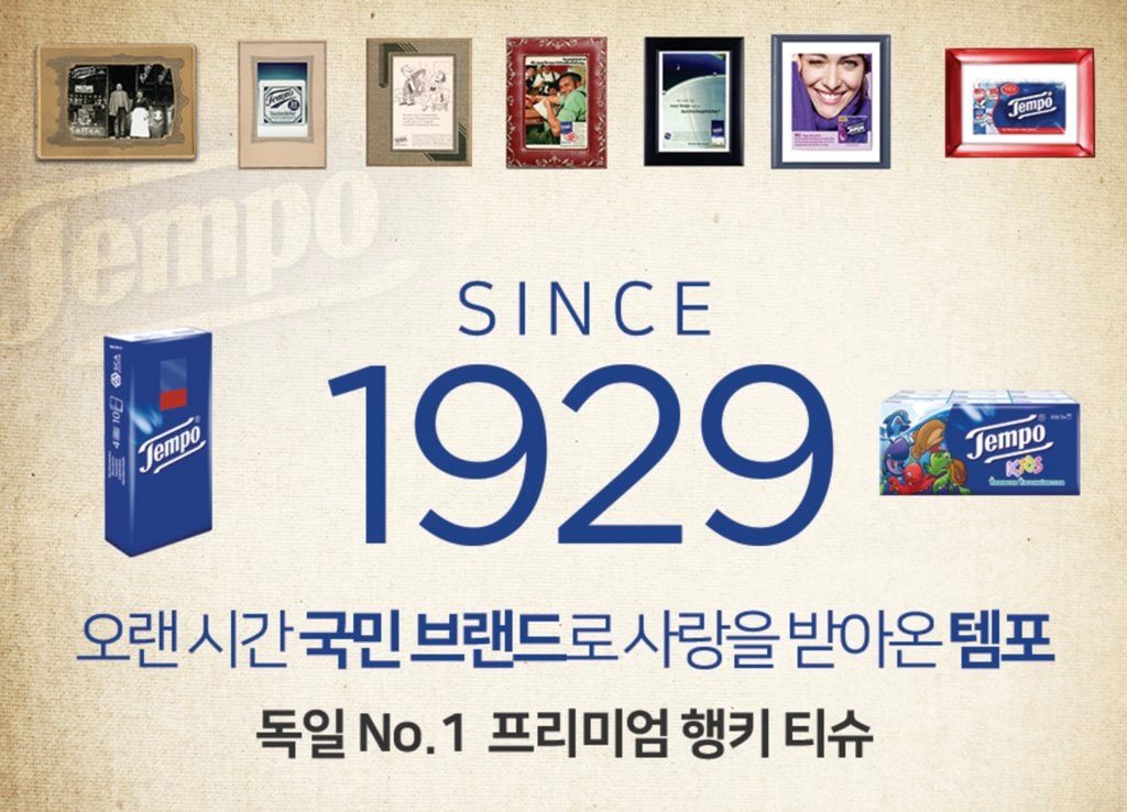 템포는 88년 전통의 독일 프리미엄 티슈 브랜드다. 손수건을 대용하기 위해 개발했던 ‘종이 손수건’으로 시작해 프리미엄 티슈라는 한 분야만 매진했다. 오랜 역사에서 오는 신뢰와 기술력으로 독일에서 국민브랜드로 자리 잡았다.