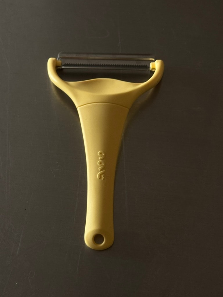 노노지는 일본의 조리도구 전문 브랜드다. 여러 제품 중에서도 양배추 채칼이 특히 유명한데, 2중 칼날로 다른 제품보다 훨씬 빨리 갈 수 있고, 완만하게 볼록한 칼날 곡선이 양배추 단면을 넓게 포착해 한 번에 길고 균일한 채를 만들어낸다. 칼날에 새겨진 미세한 톱니는 힘을 덜 들이고도 야채에 찰싹 붙어 미끄러지지 않게 해준다. 처음 써보면 "정말 이게 집에서 되나" 싶을 정도로 쉽게 썰리며, 일본 어느 식당 수준의 채가 나온다.