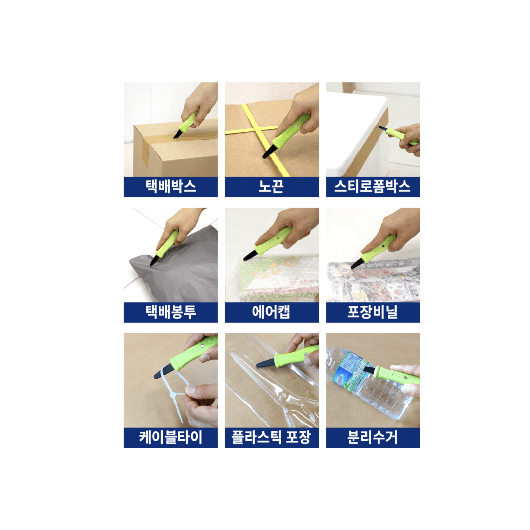 택배박스 뜯는 게 조금이라도 귀찮다면 피스코리아의 택배박스 커터를 써보면 어떨까. 테이프, 노끈, 에어캡, 케이블 타이, 스티로폼 등 어떤 재질도 손 쉽게 자를 수 있는데, 반대로 부상 위험은 오히려 낮다. 자석도 달려있어 냉장고나 스타일러 같은 곳에 부착해 둘 수도 있다. 가격은 약 9천 원.